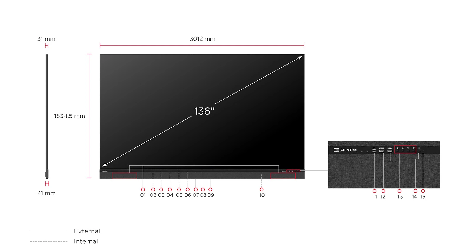 The ViewSonic LDP136-151C is a 136" enterprise-class All-in-One LED Display designed to elevate visual performance for business presentations, corporate communications, and collaborative environments. Featuring Full HD (1080p) resolution, 600 nits of brightness, a 10,000:1 contrast ratio, and dual 30W speakers, it delivers sharp visuals, vibrant color, and powerful sound for impactful presentations. Ideal for mid to large conference rooms, C-level boardrooms, and corporate lobbies, the display is built with Chip-on-Board (COB) technology for enhanced durability against impact, dust, and moisture, achieving IP54 and IK08 protection ratings. All-in-One integration simplifies installation by combining power, control, image stitching, and display, allowing two people to complete setup in under two hours. A 31mm ultra-slim profile and near bezel-free design create a premium aesthetic that complements any professional space. Powered by a common cathode LED design and smart driving ICs, the display reduces power consumption while supporting long-term energy efficiency. Designed for seamless collaboration, it features PIP/PBP screen-split modes, LAN control, and optional wireless content sharing via ViewShare (sold separately) and AirSync—making it a smart, future-ready LED video wall solution for corporate and educational environments.